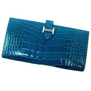 (´巨ω匠`)/エルメスで人気なのはバッグだけでなく、長財布も人気の一つ、その中でもアリゲーター素材のブルーイズミールというカラーは非常に希少価値が高いのでなかなか手に入りませんと言われています。
